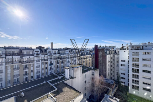 Au septième et dernier étage d'un élégant immeuble haussmannien de standing, parfaitement entretenu et desservi…