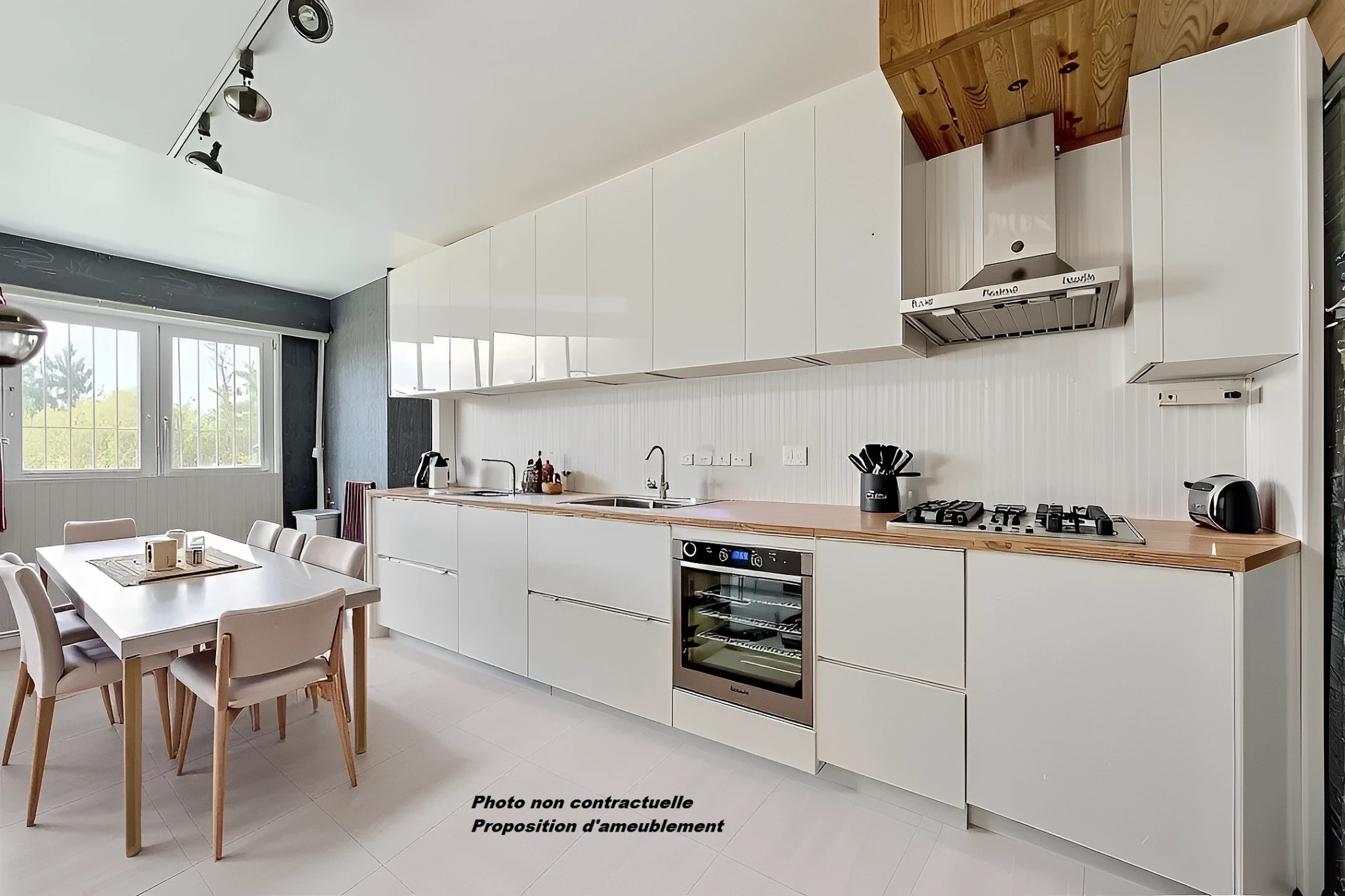 Une pièce de vie modulable : salle à manger avec cuisine ouverte pour vos dîners, séjour pour vos moments cocooning.