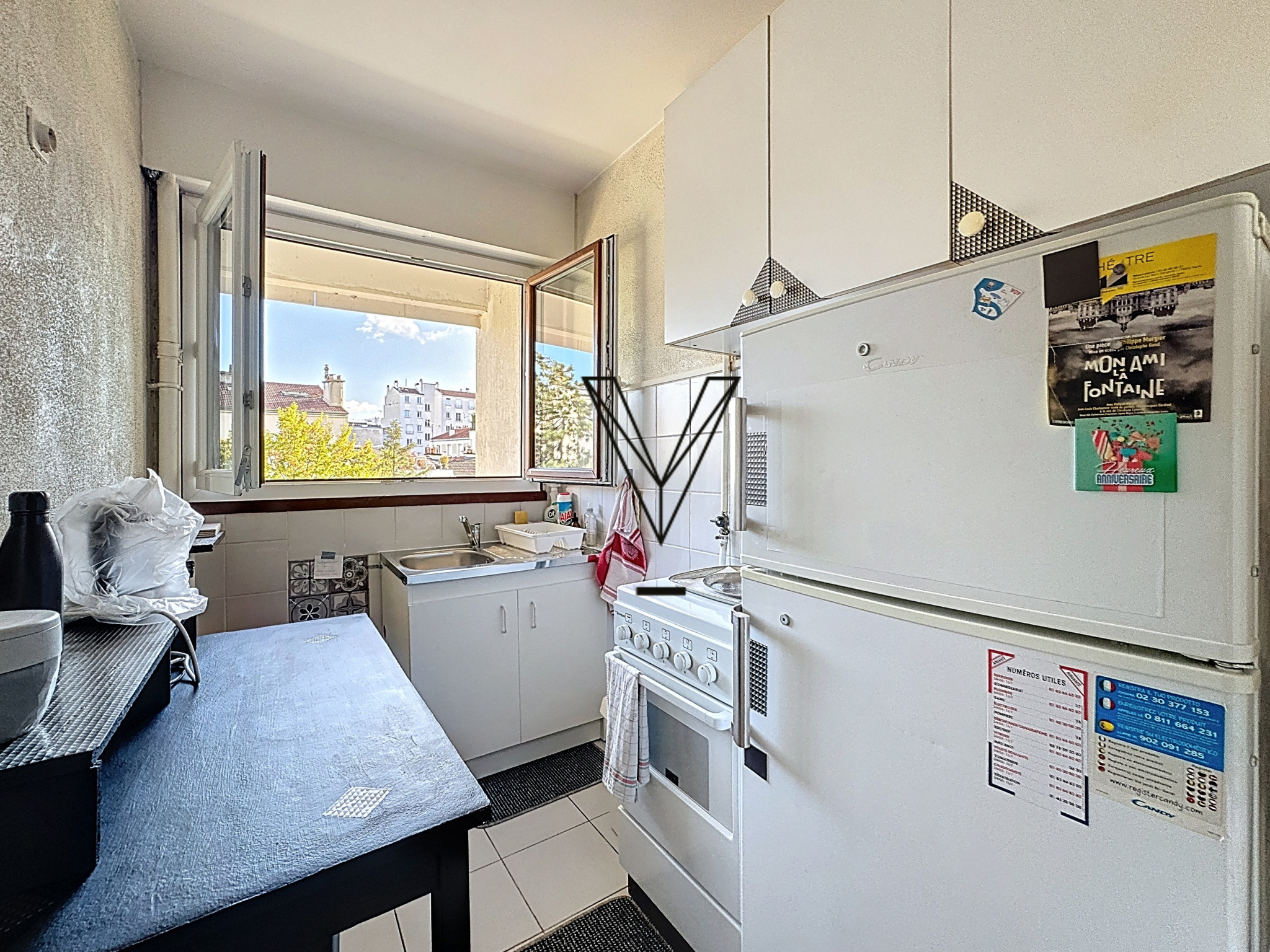 Il se compose d’une entrée avec grand placard distribuant l’ensemble des pièces, une spacieuse pièce de vie ouvrant sur un confortable balcon (7,00m2), une cuisine bien agencée et ouvrable sur la pièce principale et une salle de bains avec wc. Ce bien en très bon état est lumineux et calme. Il n’admet aucun vis-à-vis proche et son large balcon est véritable atout.