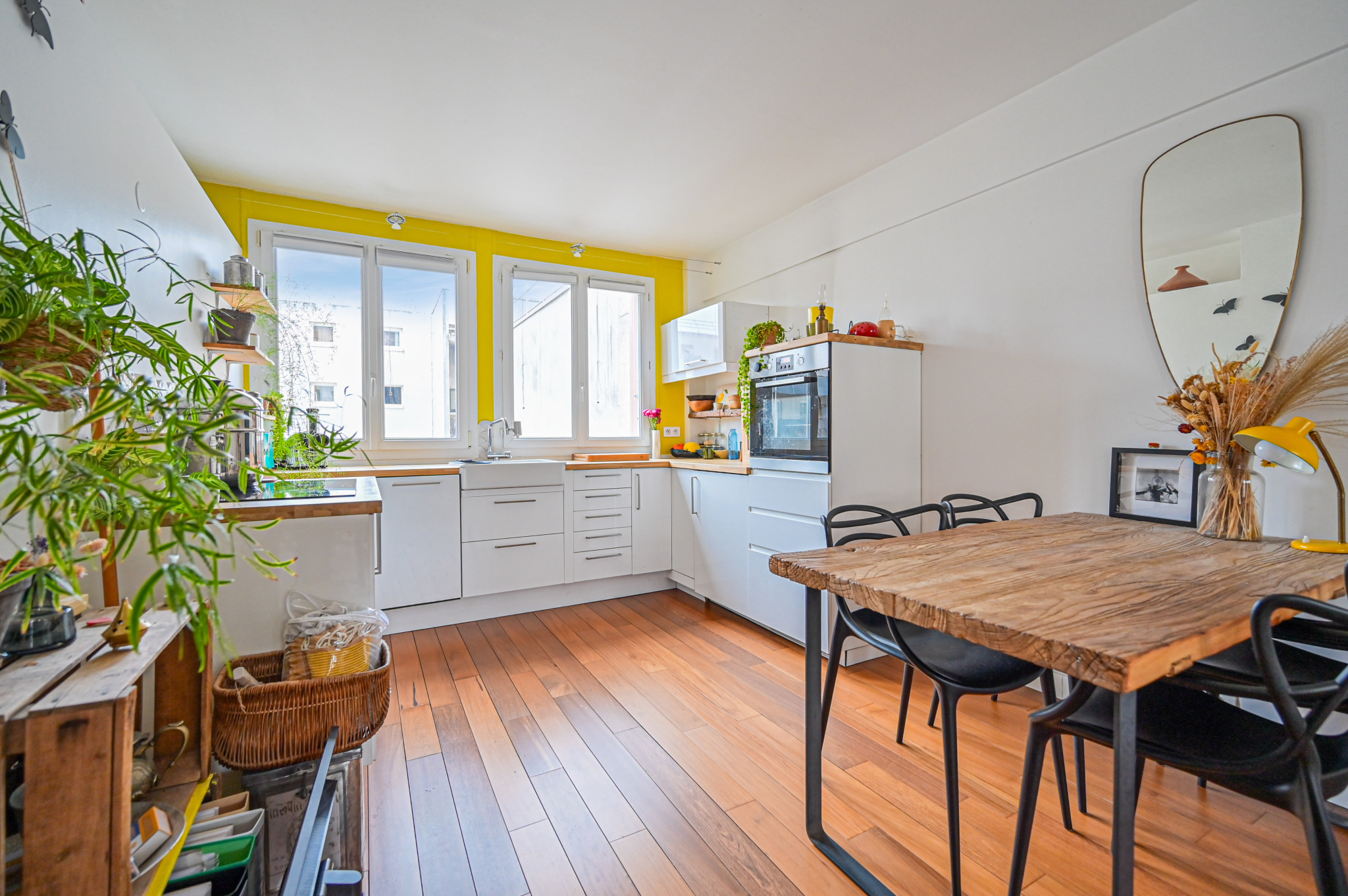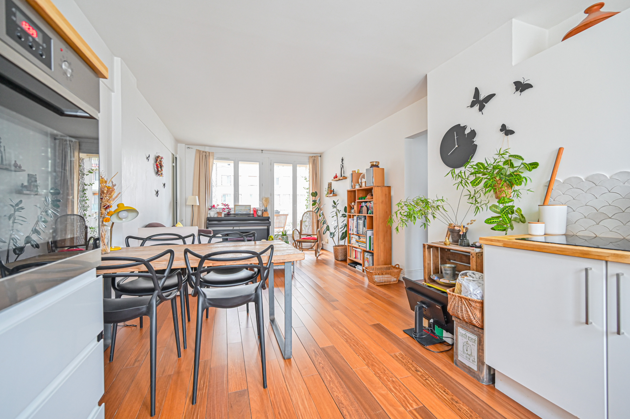 L’appartement est traversant , lumineux , les volumes sont généreux et bien optimisés, sa situation côté jardin contribue au calme.
