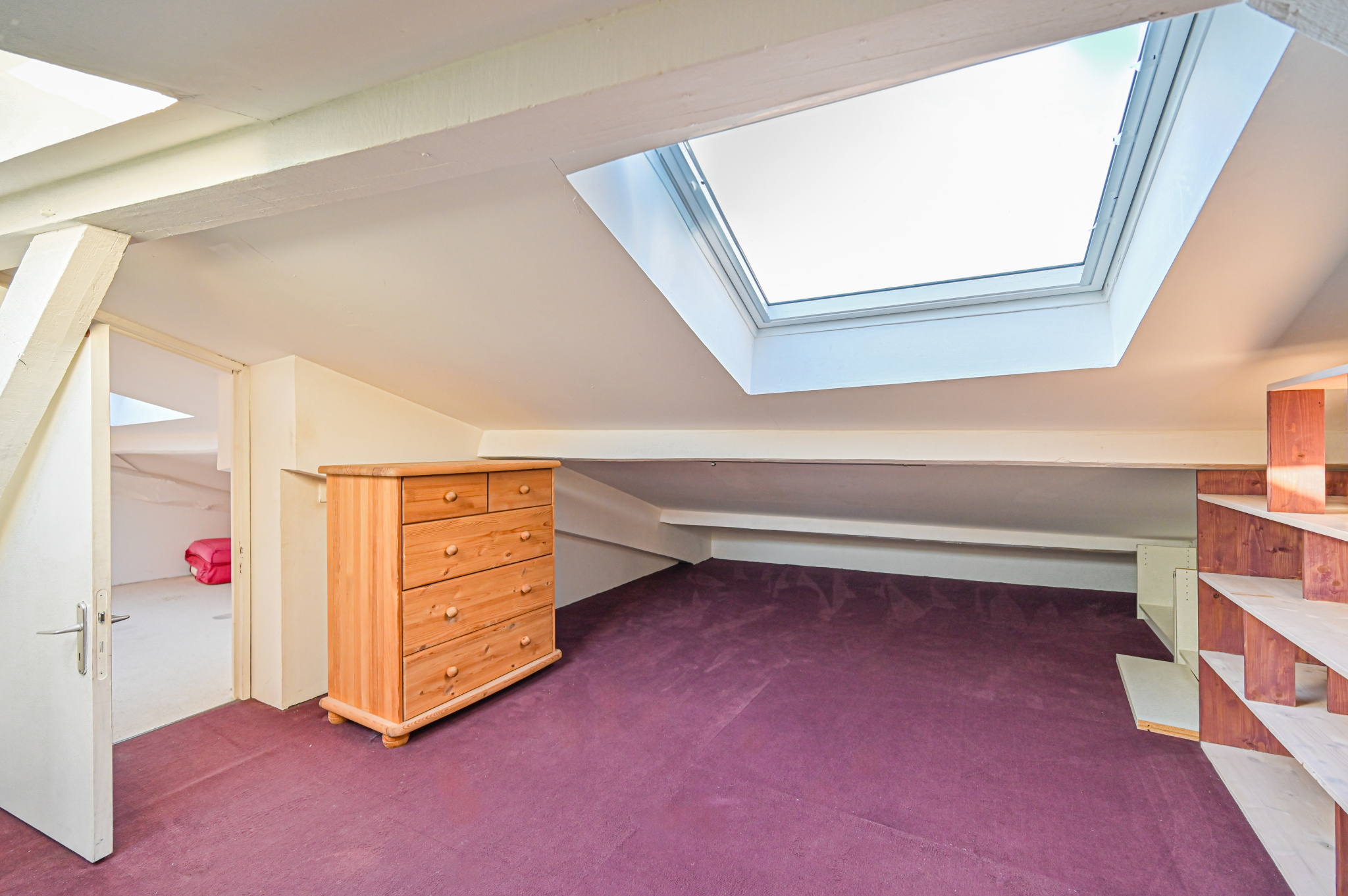 Au 2ème niveau les combles, avec de grandes fenêtres de toits pour profiter de la lumière naturelle et de l’air frais, aménagés en une mezzanine, une chambre et un débarras.