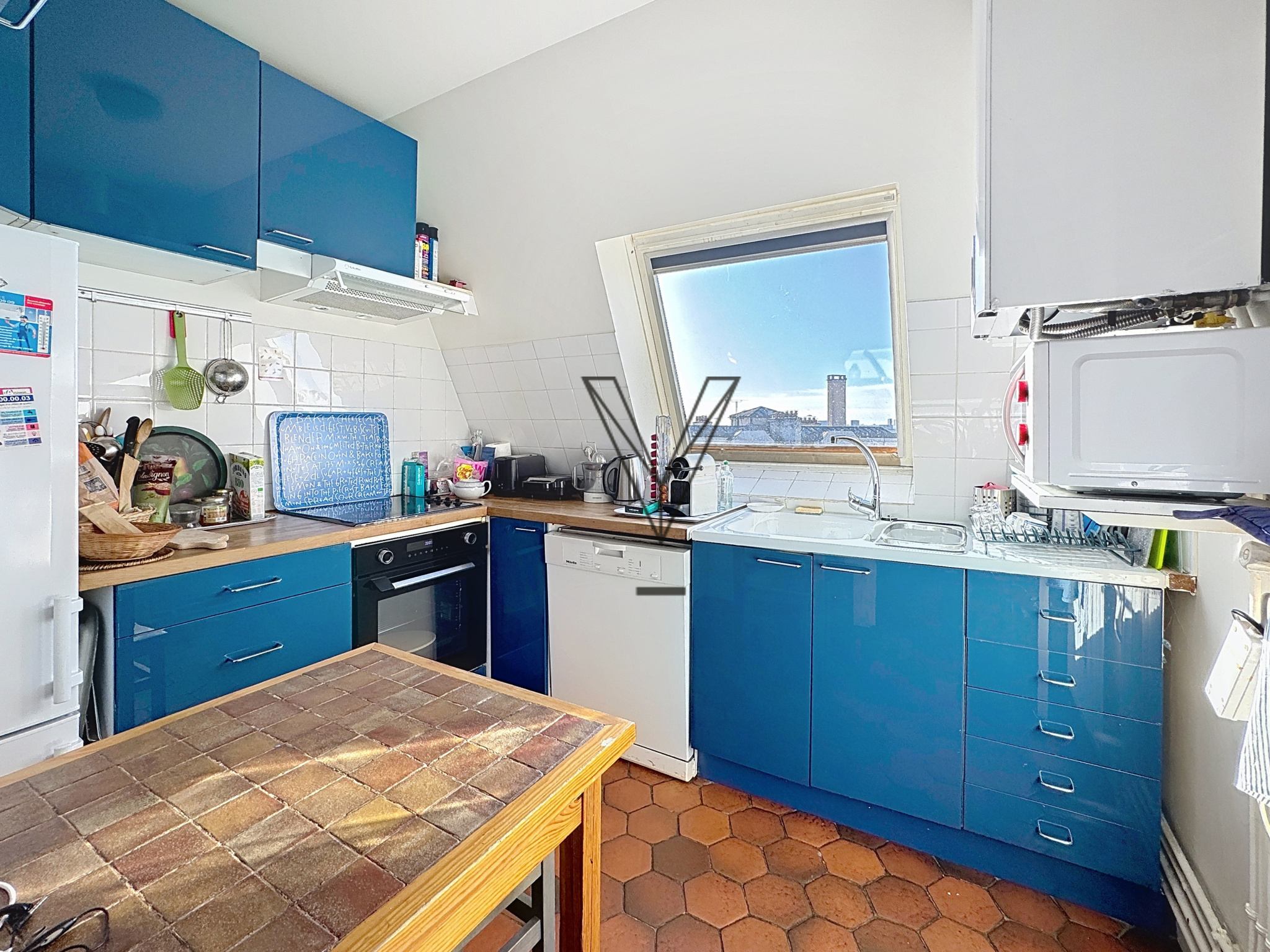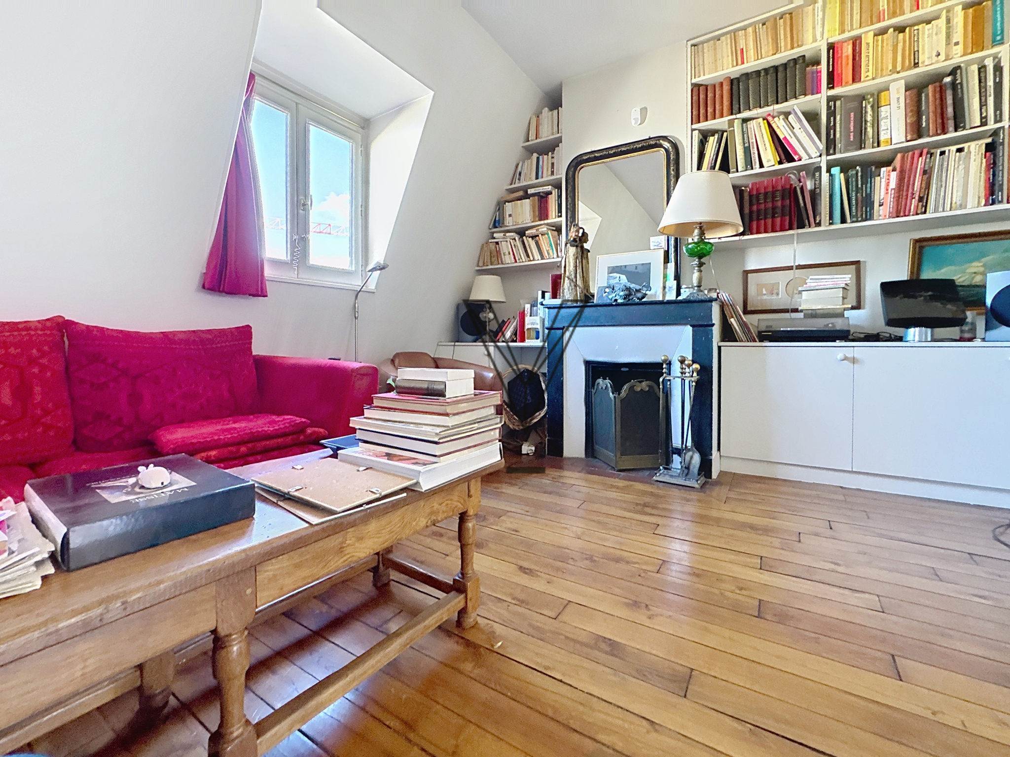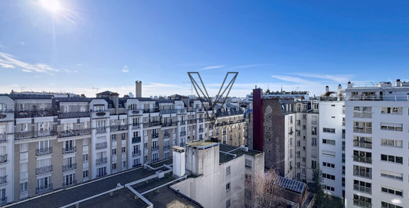 Au septième et dernier étage d’un élégant immeuble haussmannien de standing, parfaitement entretenu et desservi par ascenseur jusqu’au dernier niveau, ce trois-pièces de caractère séduit par sa luminosité, son calme et son cachet.