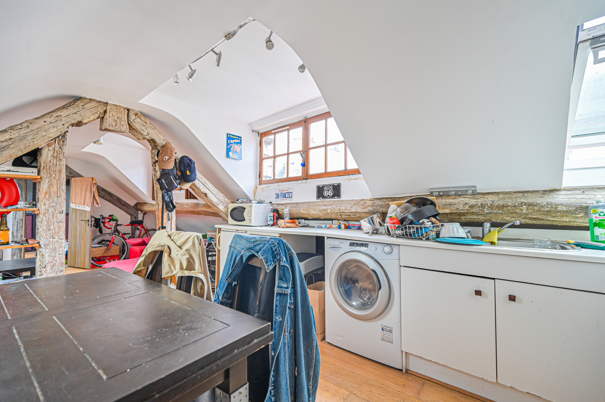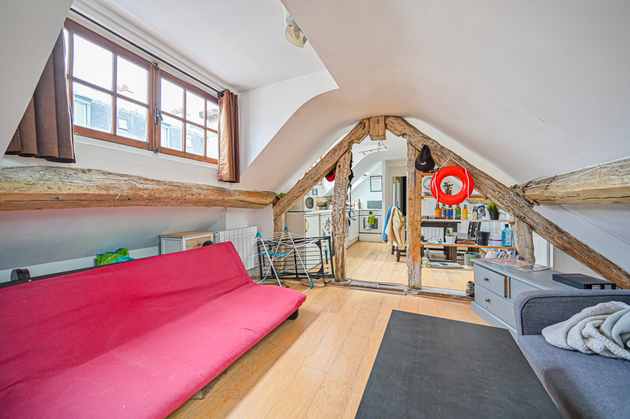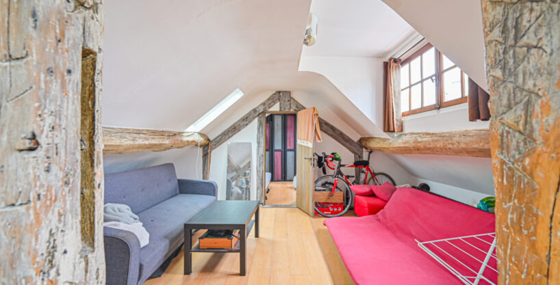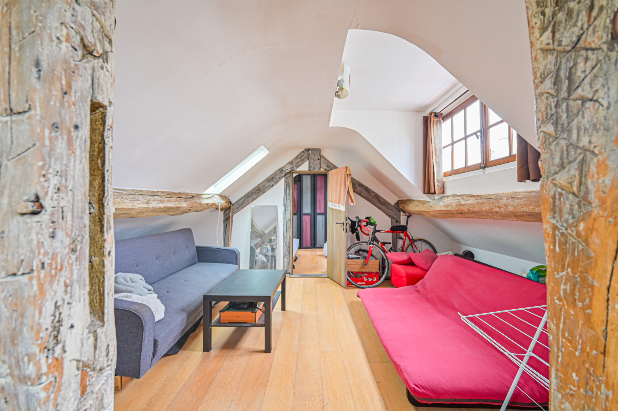RARE 380 000 euros . – Dans un immeuble en pierre bien entretenu .En étage élevé sans ascenseur , venez réver sous les étoiles à l’abri des regards .Pour les amoureux de belles poutres authentique . Superbe 2/3 pieces avec cuisine US intégré dans une vaste salle à manger, une grande chambre avec dressing , une petite chambre, wc séparé , salle de bains, placard chauffage individuel . Parquet ancien , nombreuses fenetres sans vis à vis laissant entrer beaucoup de lumiére et de soleil. CLASSE F.- Au 1er étage se trouve un petit débarras trés utile pour stoker .